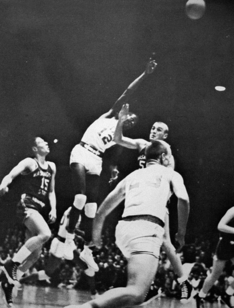 那是1955年的夏天,洛杉矶的登克球场,一个16岁的少年在闻名全美的篮球怪物面前使出了有史以来的第一个跳勾。