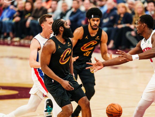 哈登18分骑士战胜活塞,被以下克上是活塞必然的结局